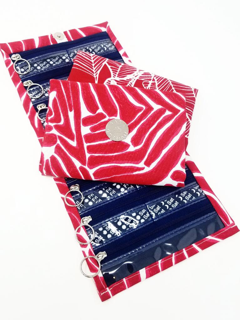 With the vibrant fabrics and rich patterns of the Pillfold Weekly Pill Organizer, it's guaranteed that you'll have the most stylish pill organizer around! Invented out of necessity, the Pillfold was created because Sara, diagnosed with lupus at the age of 26, couldn't find a cute, discreet way to organize and store her medication. Determined never to use an ugly, plastic pill box that rattled and popped open, she designed the Pillfold - a fun, unique, practical way to stow her weekly pills. Taking pills would no longer be a drag; now, it would be a dose of style™. Each Pillfold design is named after a favorite destination where Sara and her pills have traveled. Let the Pillfold add a touch of elegance and security wherever you and your medication go.